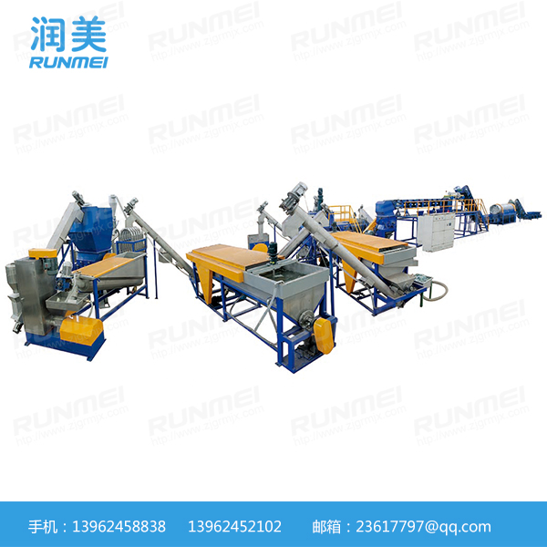 生產(chǎn)流程如下:開(kāi)包機(jī)、脫標(biāo)簽機(jī)、破碎機(jī),分揀平臺(tái),磨擦清洗機(jī),熱蒸汽清洗機(jī),單螺桿或雙螺桿清洗槽,皮芾輸送機(jī),螺旋上料機(jī),脫水機(jī),烘干機(jī),儲(chǔ)料倉(cāng)等。